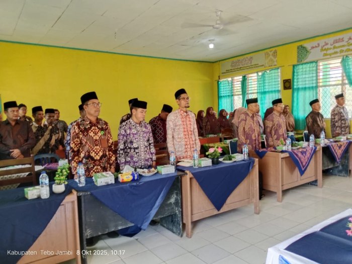 Sebelumnya Kepala MTsN 3 Tebo, Latif., S.Pd,M.Pd melaporkan profil madrasah dari tendik sampai sarana prasana serta keluh kesahnya menghadapi banjir musiman setiap tahun.