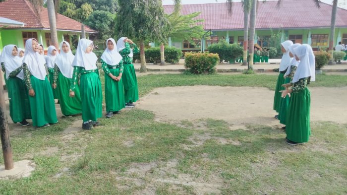 Para siswa pun tampak antusias mengikuti kegiatan baris berbaris ini. Mereka berusaha melaksanakan setiap gerakan dengan benar dan kompak. Sesekali, terdengar suara tawa dan canda dari para siswa, namun mereka tetap fokus dan semangat dalam berlatih.
