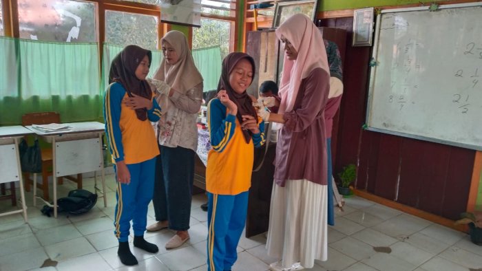 Tim medis dari Puskesmas Rimbo Ilir tiba di MIN 3 Tebo sabtu pagi hari dan langsung mempersiapkan tempat pelaksanaan suntik. Para siswa MIN 3 Tebo tampak antusias mengikuti kegiatan ini. Mereka didampingi oleh guru yang memberikan semangat.