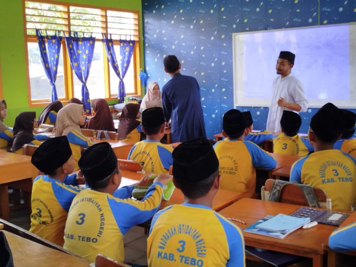 Para siswa MIN 3 Tebo tampak antusias mengikuti presentasi tersebut. Mereka mengajukan berbagai pertanyaan mengenai kehidupan di pesantren, program-program yang ditawarkan, serta fasilitas yang tersedia.