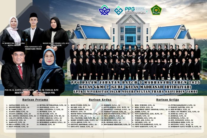 Ibu Rini Ulva, yang mengampu mata pelajaran Akidah Akhlak, mengikuti upacara pengukuhan di Institut Agama Islam Negeri (IAIN) Kerinci. Sementara itu, Ibu Nuraini, guru kelas, diresmikan sebagai Guru Profesional di Universitas Islam Negeri (UIN) Jambi. Kedua upacara pengukuhan dilaksanakan di tempat dan waktu berbeda, ibu Nuraini,S.Pd dilaksanakan pada Sabtu, 10 Januari 2026 sedangkan Ibu Rini Ulva,S.Pd dilaksanakan pada Kamis, 15 Januari 2026.