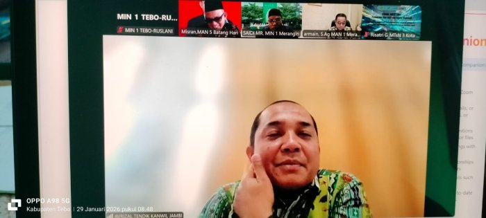 Pulung Rejo (Rimbo Ilir-Tebo), 31 Januari 2026 - Kepala MIN 3 Tebo, Syahrul, S.Pd hadir dalam kegiatan Rapat Koordinasi Kelompok Kerja Madrasah (KKM) jenjang MAN, MTsN dan MIN se Provinsi Jambi. Kegiatan ini diadakan oleh Bidang Penmad Kanwil Kementerian Agama Provinsi Jambi, kamis 29 Januari 2026. Acara dipandu oleh Avrizal Katim GTK Kanwil Kementerian Agama Provinsi Jambi.