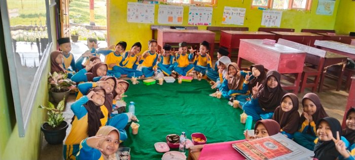 Pulung Rejo (Rimbo Ilir), 7 Februari 2026 – wali kelas Madrasah Ibtidaiyah Negeri 3 Tebo, memberikan arahan khusus kepada para siswanya untuk selalu membawa bekal makanan dan minuman dari rumah saat datang ke madrasah.